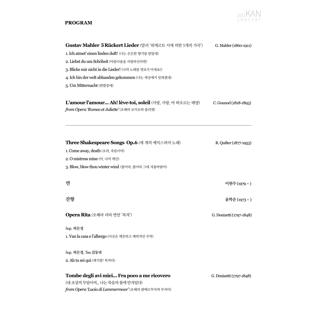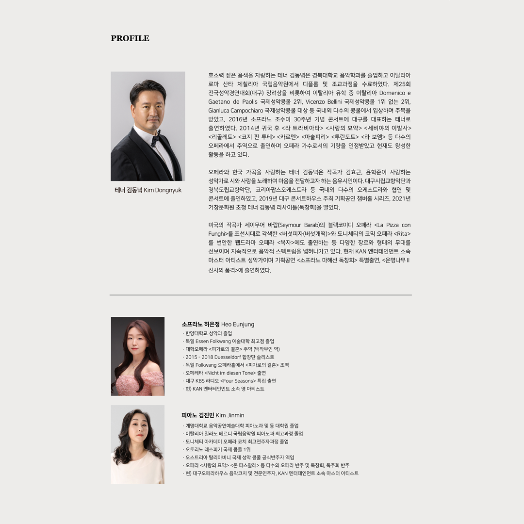 출연 테너 김동녘 피아노 김진민 ⠀ 특별출연 소프라노 허은정